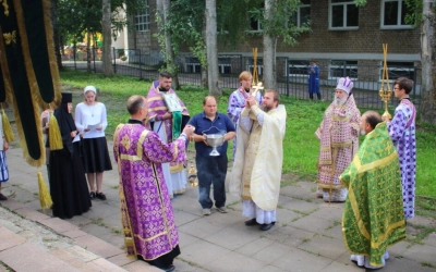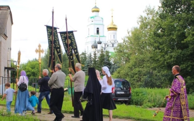 По случаю Престольного праздника духовенство во главе с Епископом Сергием совершили Крестный ход.