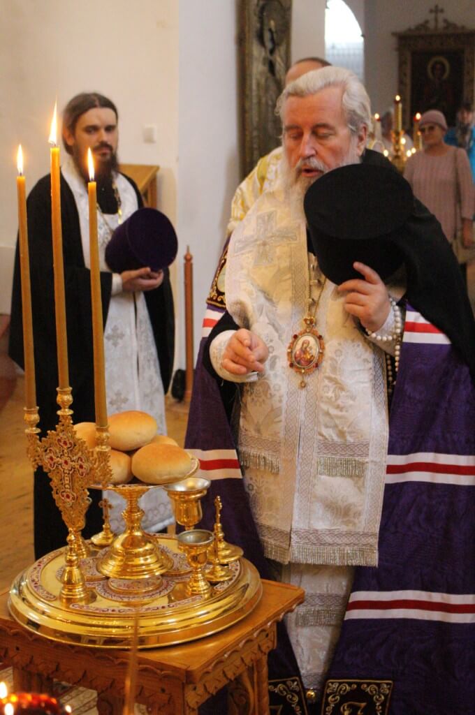 На литии было совершено благословение хлебов, а на утрени - полиелей с чтением праздничного Евангелия и помазание всех молящихся освященным елеем.