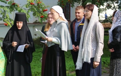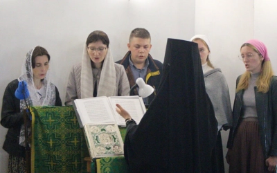 Богослужебные песнопения исполнил хор возрождаемого Спасо-Аркадиевского женского монастыря под управлением инокини Агнии (Цепко).