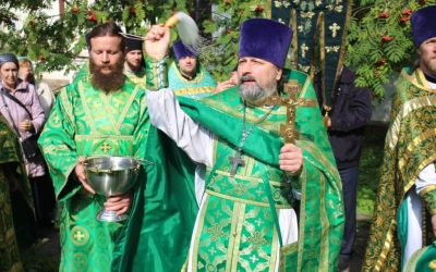 По случаю Престольного праздника духовенство во главе с Епископом Сергием совершили Крестный ход.