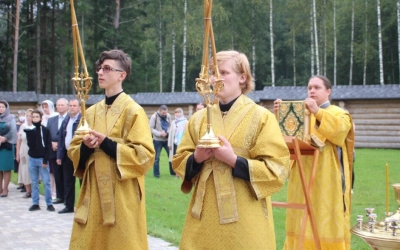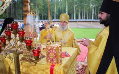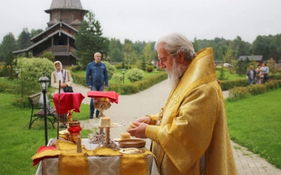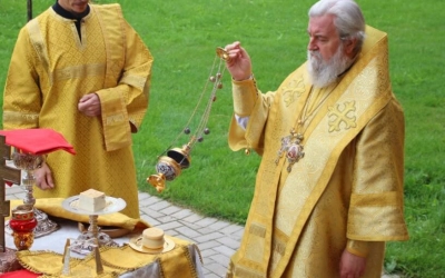 Богослужение возглавил Преосвященнейший Сергий, епископ Вяземский и Гагаринский, священноархимандрит Свято-Владимирского мужского монастыря на истоке Днепра.