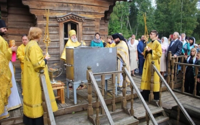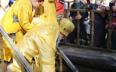 По отпусте Божественной литургии был совершен Крестный ход к часовне, построенной на истоке Днепра, где состоялось освящение вод Великой Русской реки, ставшей некогда крещальной купелью славянских народов.