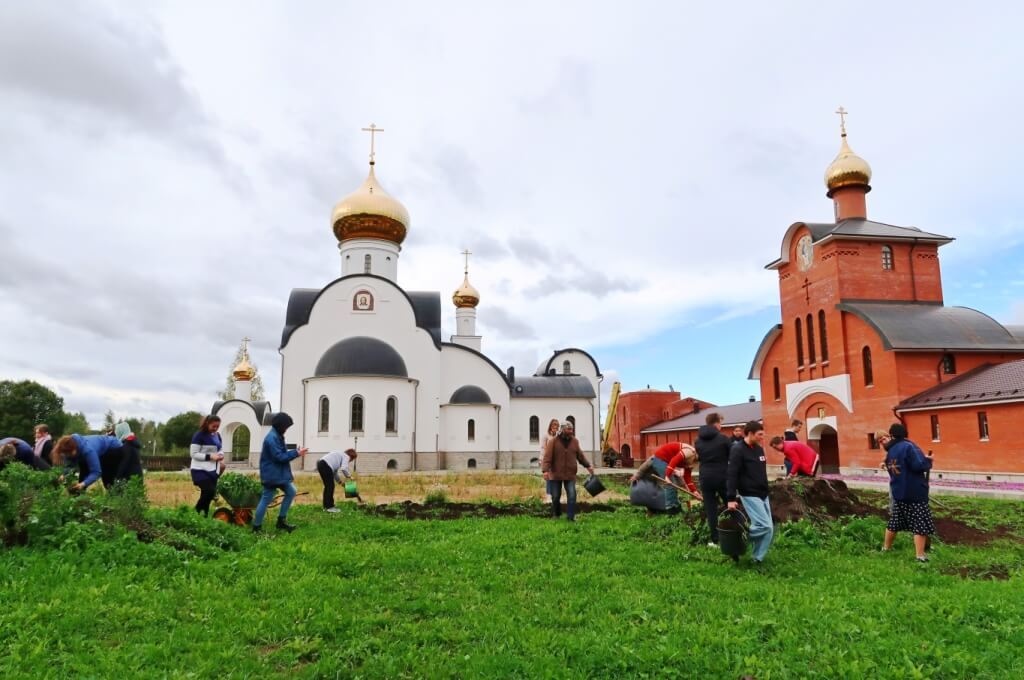 Большую часть времени студентов заняли труды по благоустройству въездной площади обители.
