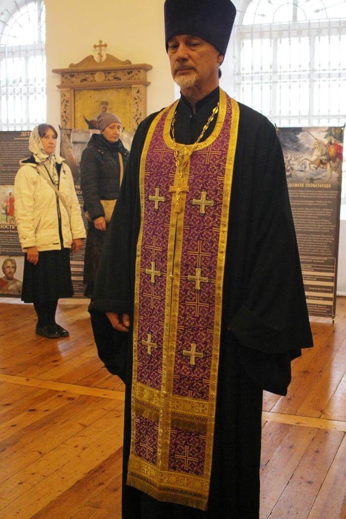 настоятель Свято-Троицкого кафедрального собора города Вязьма иерей Александр Курмелёв, клирик Свято-Троицкого кафедрального собора города Вязьма иерей Владимир Покатов, клирик Свято-Троицкого кафедрального собора города Вязьма иеромонах Симеон (Берёзкин).