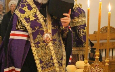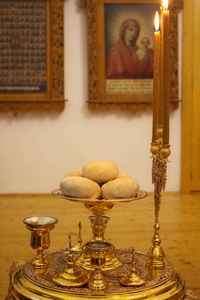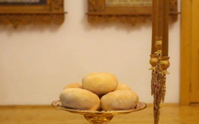На вечерне была совершена лития с благословением хлебов, пшеницы, вина и елея.
