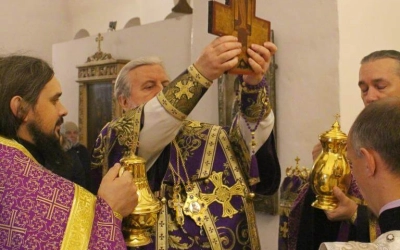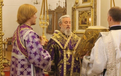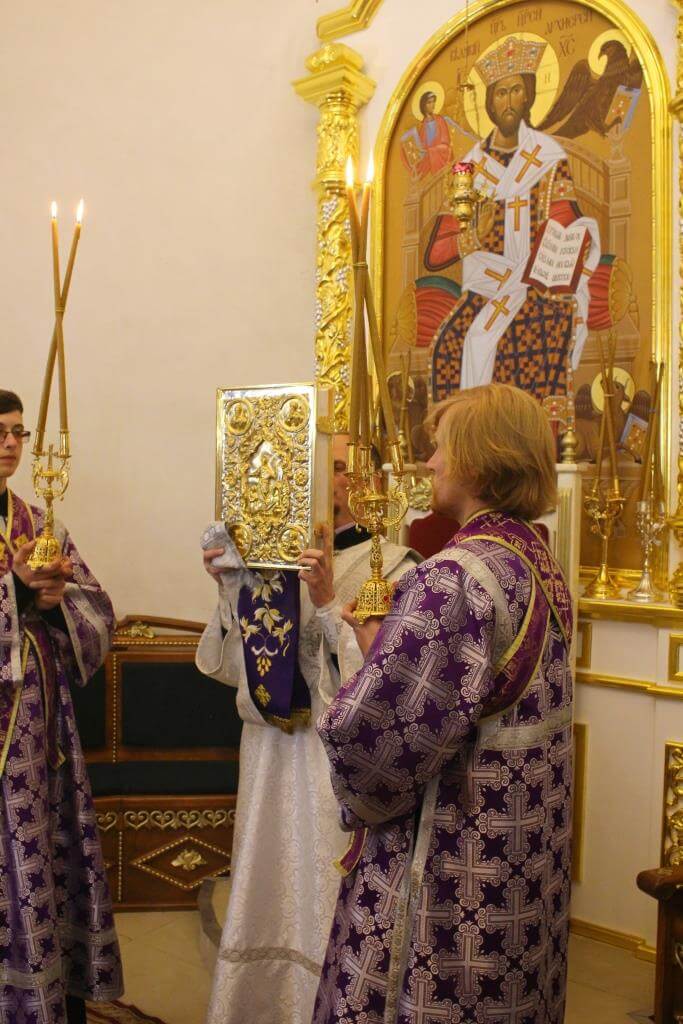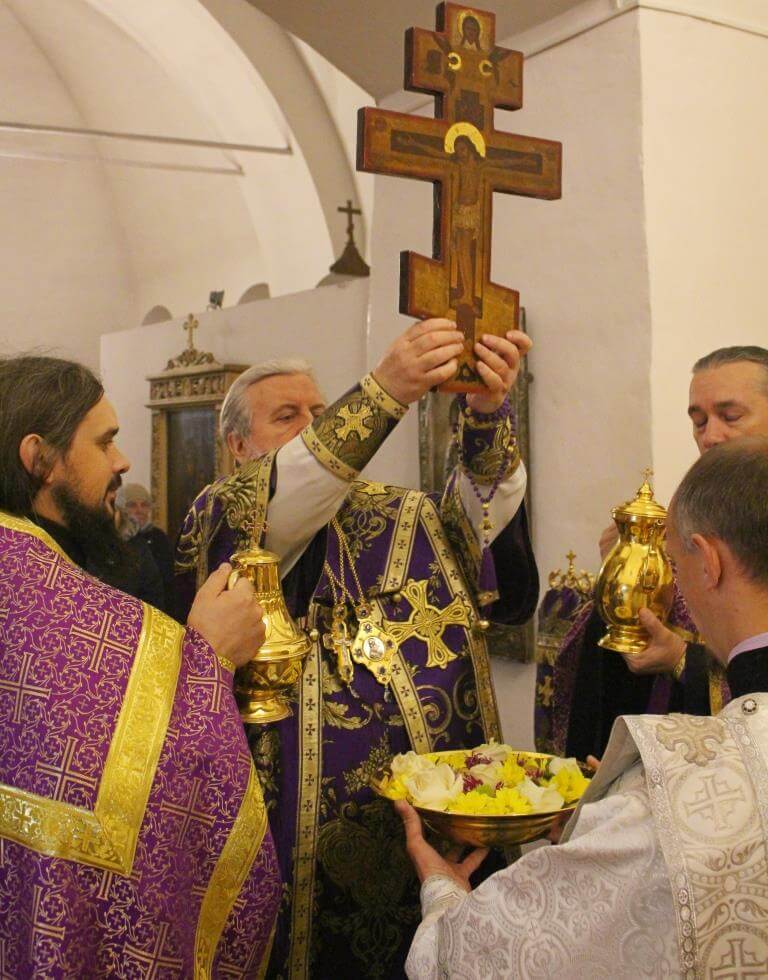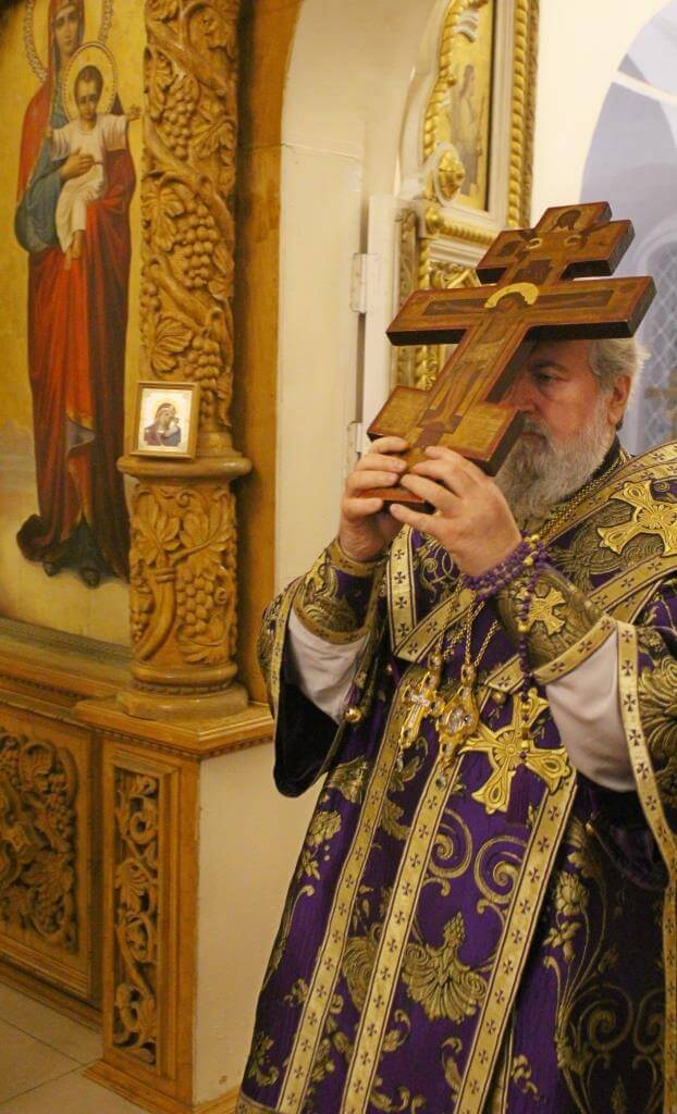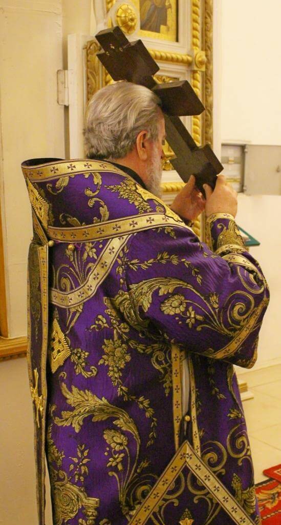 Во время пения Великого славословия на утрене епископ Сергий изнёс Крест Господень на середину храма, после чего все молящиеся поклонились орудию Спасительной Смерти Господа Иисуса Христа и были помазаны освященным елеем.