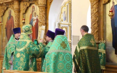Служение Божественной литургии по случаю Престольного праздника возглавил Преосвященнейший Сергий Епископ Вяземский и Гагаринский.