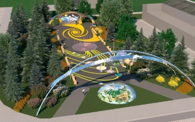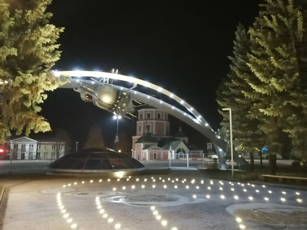 Комплекс, включающий космический корабль в натуральную величину, звезды и даже свою мини-галактику, расположился в сквере, названном в честь космонавта Алексея Леонова.