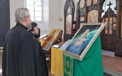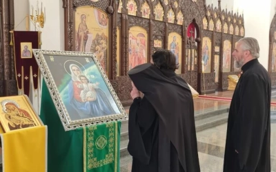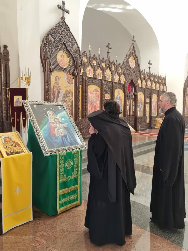 Икона была бережно доставлена в Благовещенский собор г.Гагарин , где перед ней духовенство отслужило молебен.