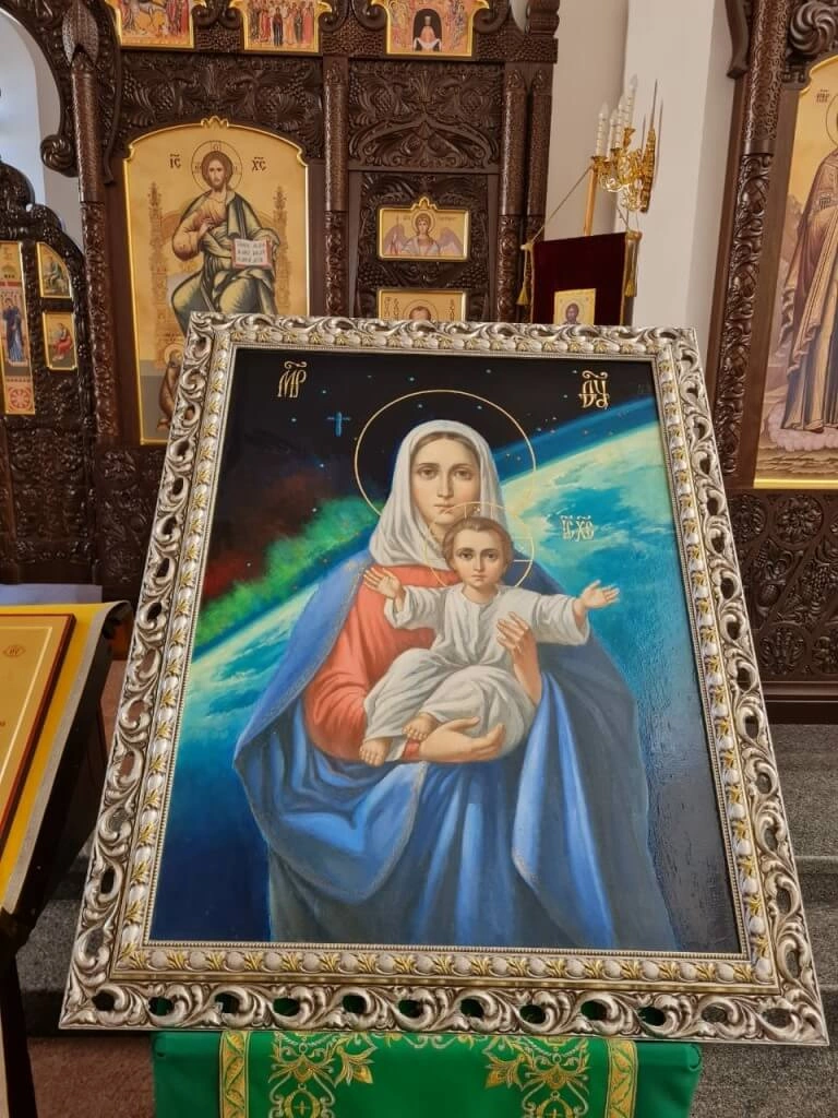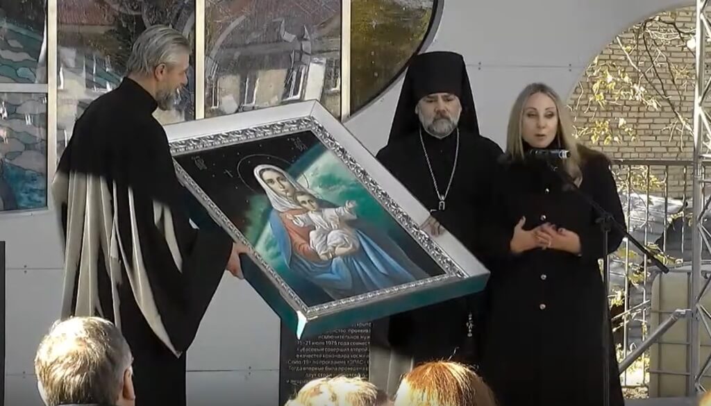 К жителям и гостям города с приветственным словом обратилась вдова Алексея Архиповича и вручила в дар Благовещенскому собору уникальную икону «Аз есть с вами, и никто же на вы» (я рядом с вами и никто вам не повредит), фон с космическим пейзажем для которой собственноручно написал космонавт Леонов.