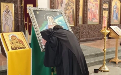 Игумен Александр поблагодарил Светлану Павловну за принесенную в дар святыню: