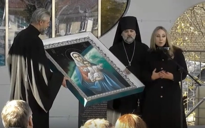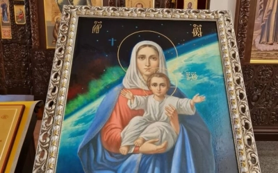«С сердечной Благодарностью принимаем сей Святой образ Пресвятой Богородицы, уверяем в своих молитвах о приснопамятном рабе Божием Алексее. Да благословит Господь наших чудо-богатырей Российских космонавтов и я верю, что сей образ станет одной из святынь возрождающегося Благовещенского собора. Храни Всех Господь, сердечный низкий поклон».