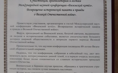 Приветствую участников, организаторов и гостей Международной научной конференции «Вяземский котёл». Возвращение исторической памяти и правды о Великой Отечественной войне».
