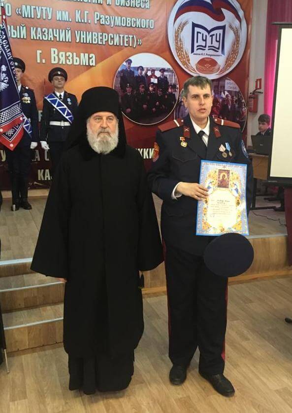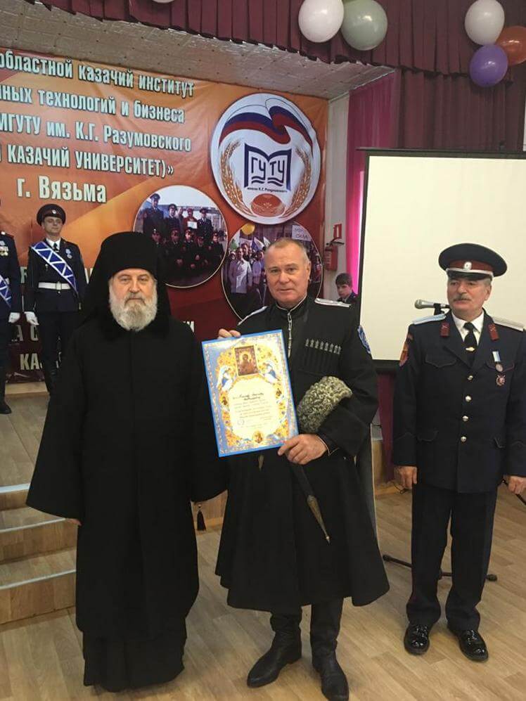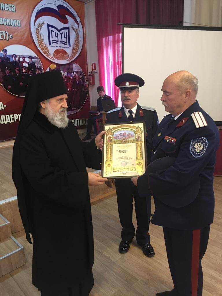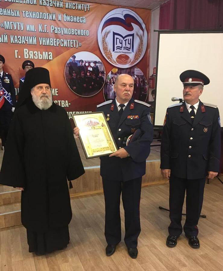 Александру Ивановичу Культяпкину вручена благодарственная грамота Синодального отдела по взаимодействию с казачеством Московской Патриархии.