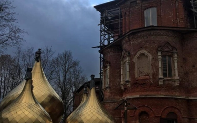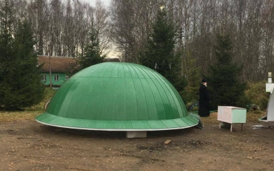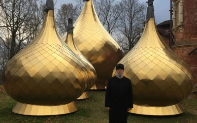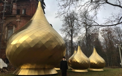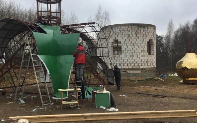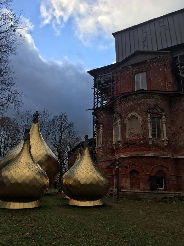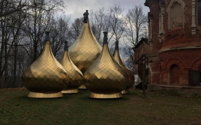 Затем Архипастырь посетил с. Высокое Новодугинского района, где осмотрел новые купола для храма Тихвинской иконы Божией Матери.