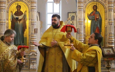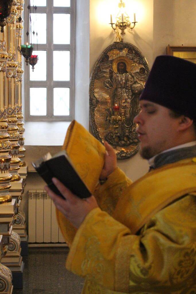 Правящему Архиерею сослужили: старший священник Спасо-Богородицкого Одигитриевского женского монастыря иеромонах Даниил (Сычёв), настоятель Иоанно-Предтеченского храма г. Одинцово протоиерей Игорь Смертин, клирик Свято-Троицкого собора г. Вязьма иеромонах Симеон (Берёзкин).