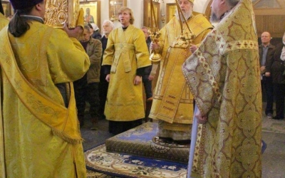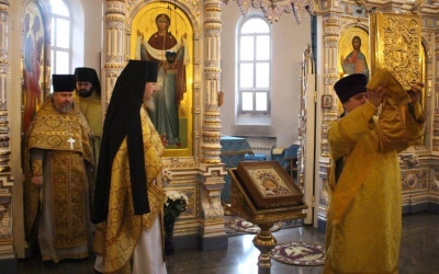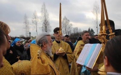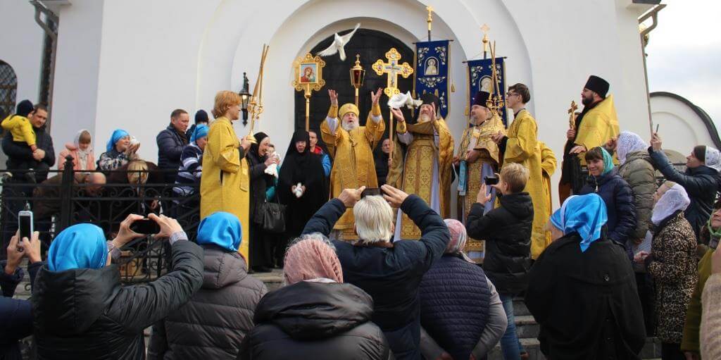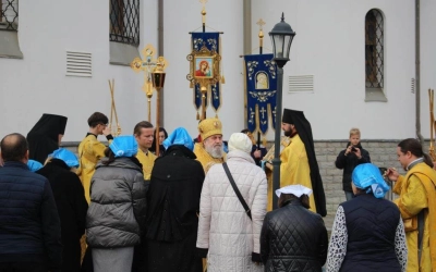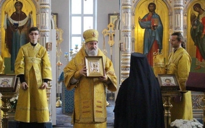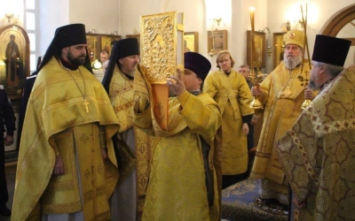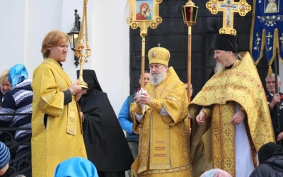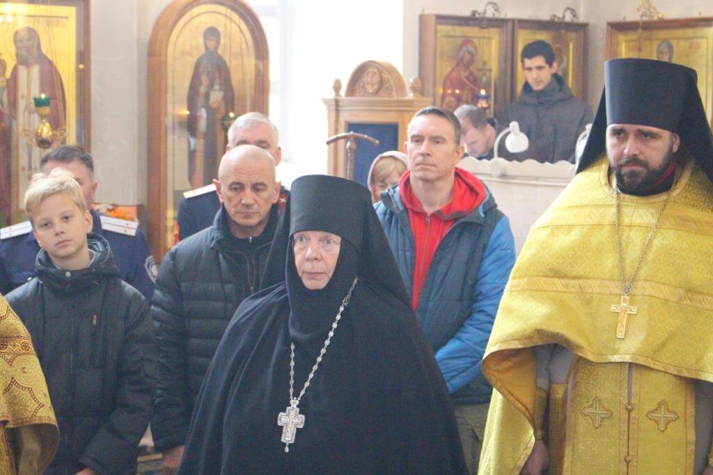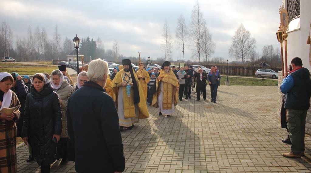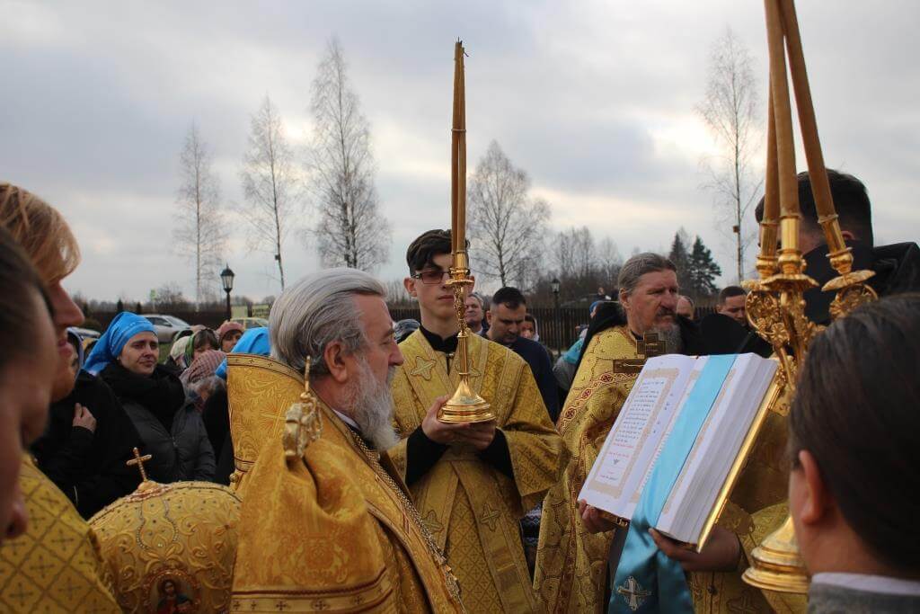 Во время совершения Крестного хода, епископ Сергий совершил литию у поклонного Креста, поминая всех вождей и воинов, души свои положивших за веру и отечество. По окончании литии, в храме были совершены молитва и величание у иконы Покрова Пресвятой Богородицы.