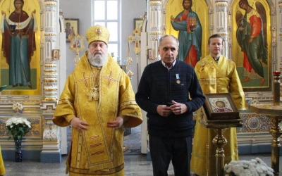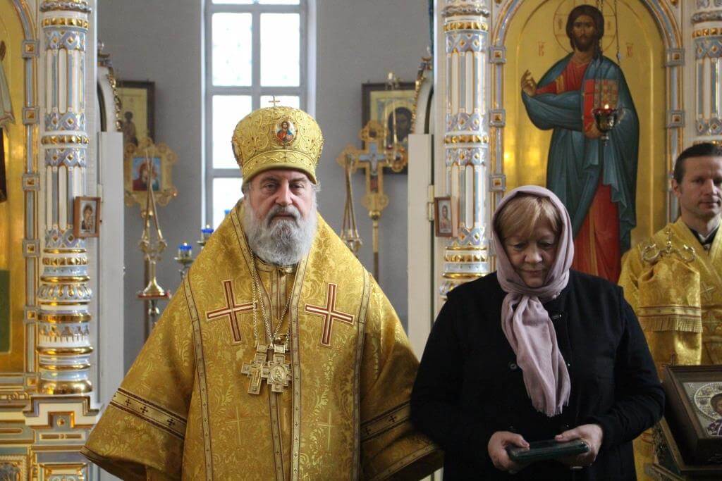 В продолжении своего слова Епископ Сергий наградил епархиальной медалью прп. Аркадия Вяземского 2-й степени Нину Фёдоровну Шабалину, медалью прп. Аркадия Вяземского 3-й степени Александра Васильевича Шабалина.