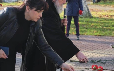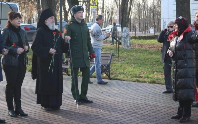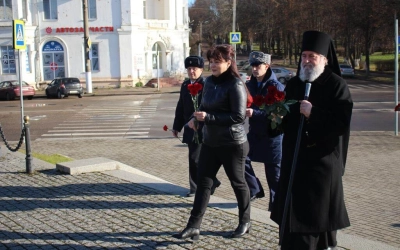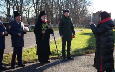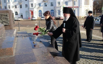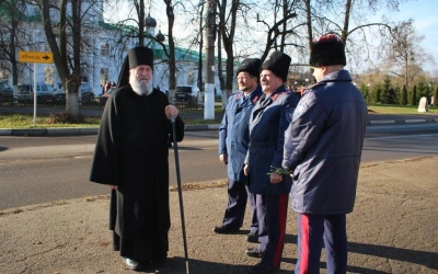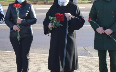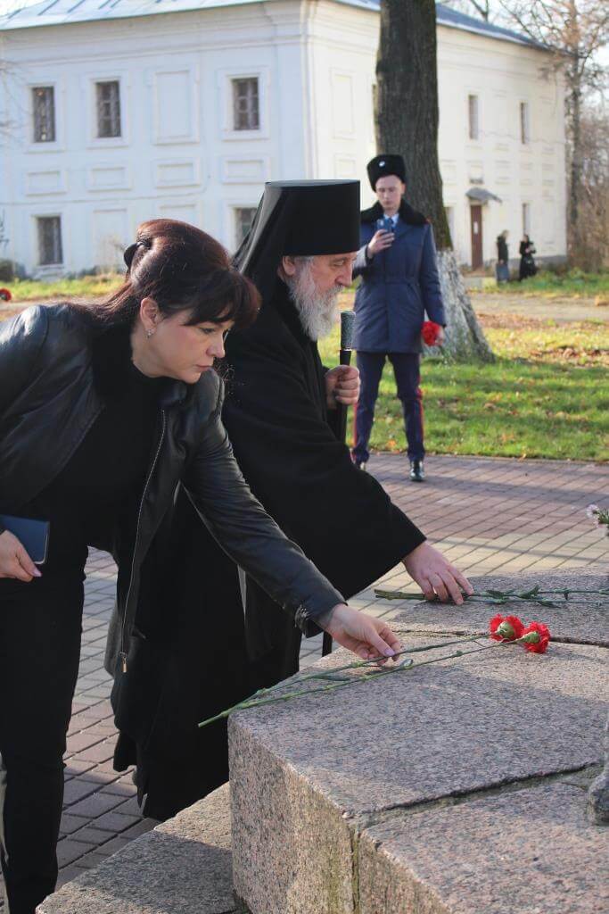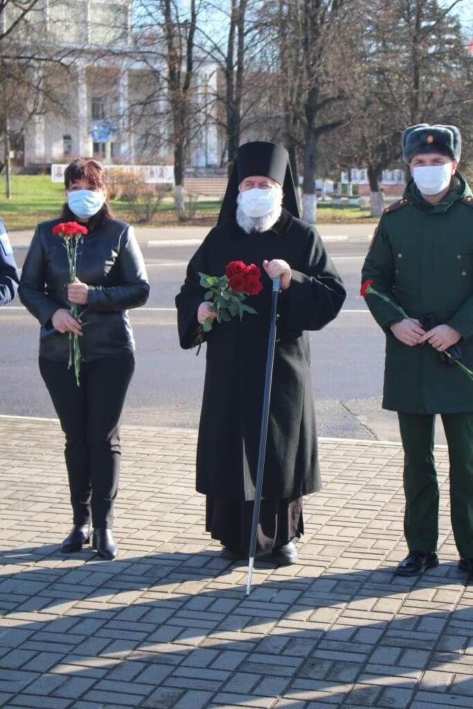 По завершении Богослужения Епископ Сергий, власти города, казаки и военнослужащие возложили цветы к Стеле «Город воинской славы», а также к Памятнику Перновскому полку на главной площади Вязьмы.