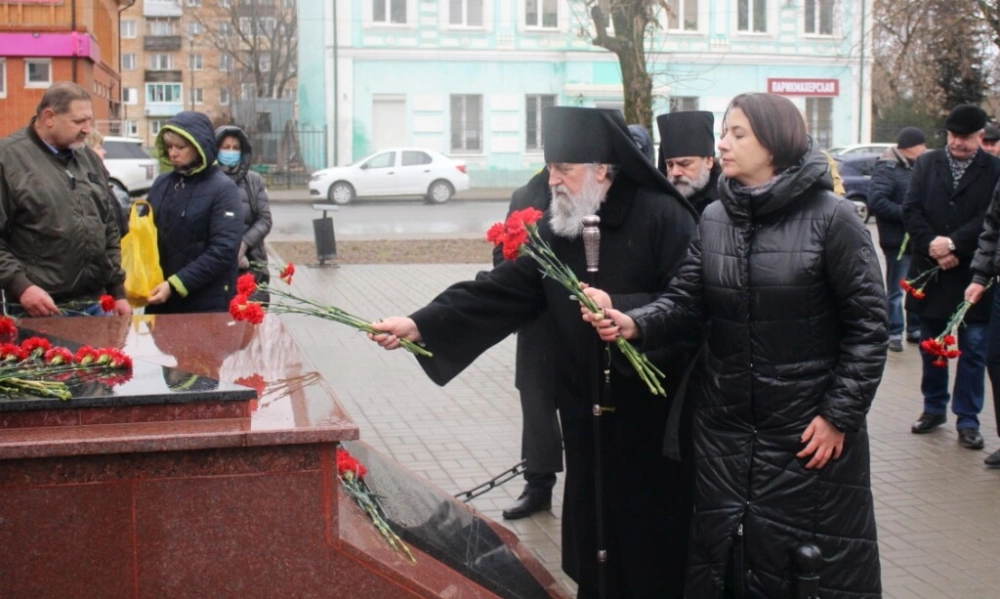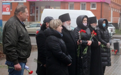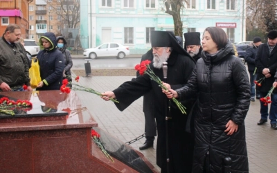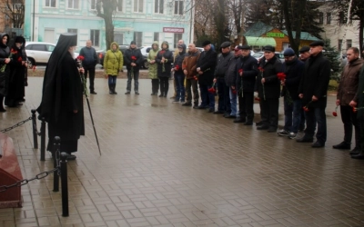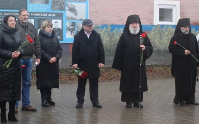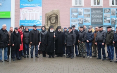 За митингом владыка Сергий обратился с архипастырским словом к землякам и воздожил цветы к памятнику, посвященному светлой памяти погибших воинов.