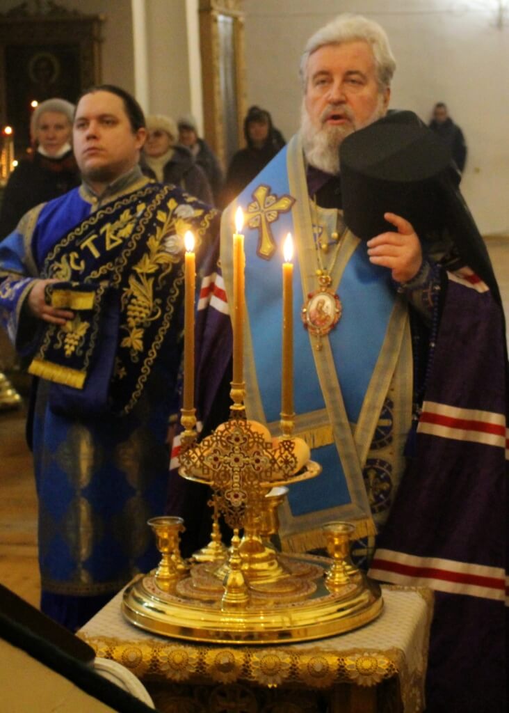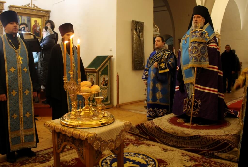 В канун праздника Введения во храм пресвятой Богородицы Епископ Вяземский и Гагаринский Сергий совершил всенощное бдение в Свято-Троицком кафедральном соборе.