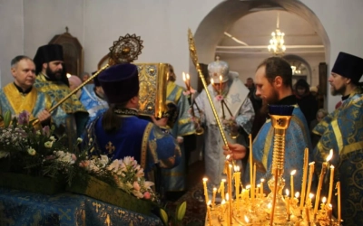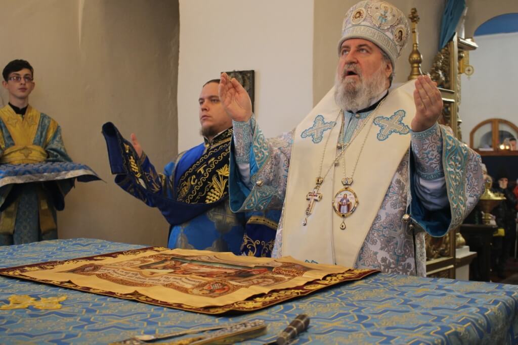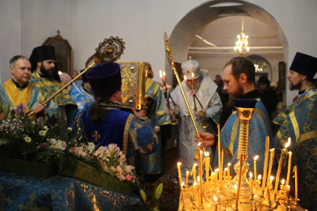 В завершении Божественной литургии было совершено Славление по случаю праздника Введения во храм Пресвятой Богородицы.