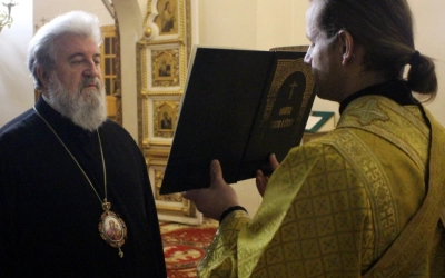 Его Преосвященству сослужили: настоятель Свято-Троицкого кафедрального собора города Вязьмы иерей Александр Курмелёв, клирики Свято-Троицкого кафедрального собора города Вязьмы иеромонах Симеон (Берёзкин) и иерей Максим Мамонов