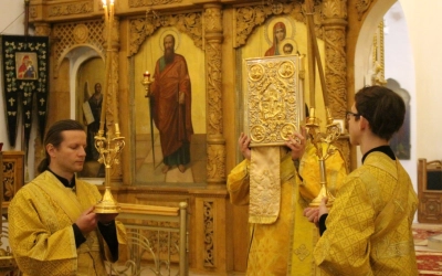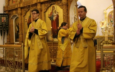 Богослужебные песнопения исполнил хор Свято-Троицкого собора - регент Елена Платонова.