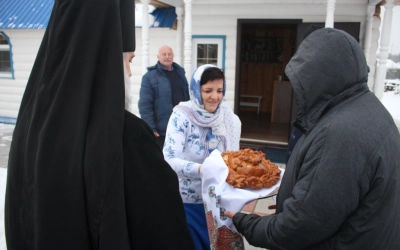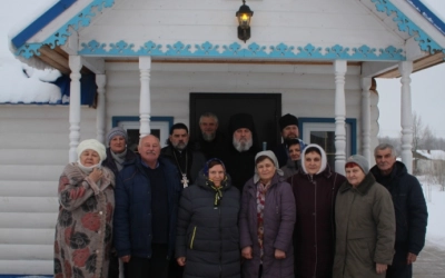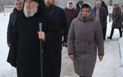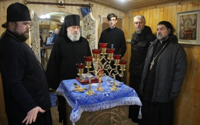 В ходе архипастырского визита преосвященнейшего Сергия сопровождали Благочинный Гагаринского округа игумен Александр (Карпиков), настоятель храма в честь иконы Божией Матери "Всех скорбящих Радосте" иеромонах Андрей (Дергачёв-Белошецкий).