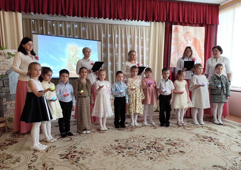 Воспитатели совместно с детьми, посещающими кружок "Основы Православной культуры" подготовили и провели увлекательное действо, рассказывающее о событии праздника, раскрывающее его смысл. Свое повествование они сопровождали стихами и песнями, посвященными Божией Матери.