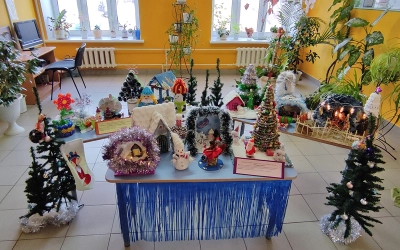 В фойе учреждения организована высавка поделок, посвященная предстоящему празднику Рождества Христова.