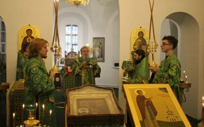 По отпусте Божественной Литургии было совершено славение перед иконой святого преподобного Аркадия Вяземского.