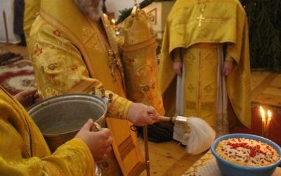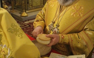 В завершении богослужения было совершено славление Спасителя и Господа нашего Иисуса Христа, а так же освящение колива.