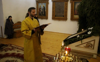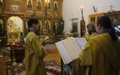 Богослужебные песнопения исполнил хор Свято-Троицкого собора под управлением регента Елены Платоновой.