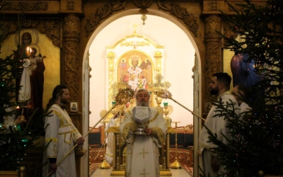 В завершении праздничного Богослужения было совершено славление Спасителя и Господа нашего Иисуса Христа, а так же преосвященнейший Сергий огласил Рождественское послание клиру, монашествующим и мирянам Святейшего Патриарха Московского и всея Руси Кирилла.
