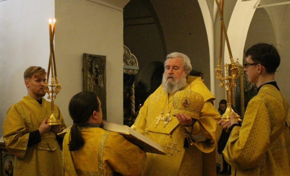 Его Преосвященству сослужили: клирики Свято-Троицкого кафедрального собора города Вязьмы иеромонах Симеон (Берёзкин) и иерей Максим Мамонов