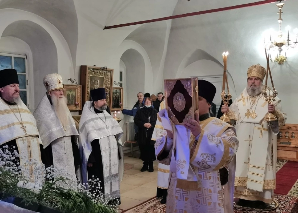 Рождественское послание Преосвященного Сергия епископа Вяземского и Гагаринского: пастырям, монашествующим и всем верным чадам Веры Православной, огласил клирик Свято-Троицкого кафедрального собора иеромонах Симеон (Берёзкин).