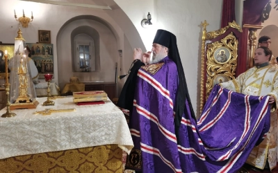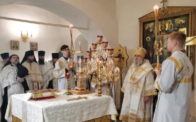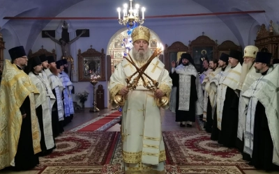 Его Преосвященству сослужили благочинные Вяземской епархии и духовенство Вяземского благочиния.
