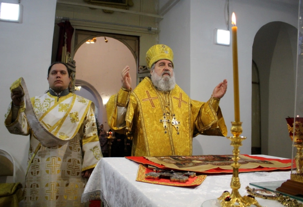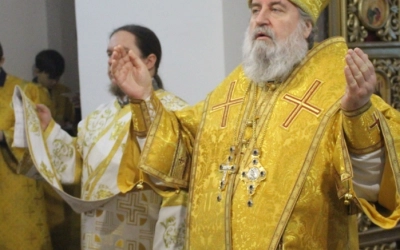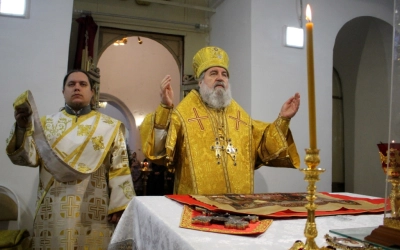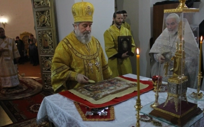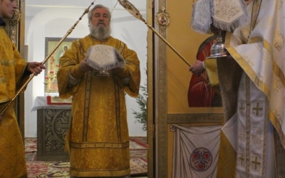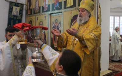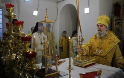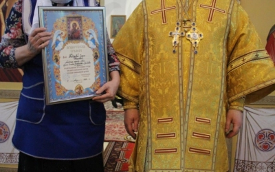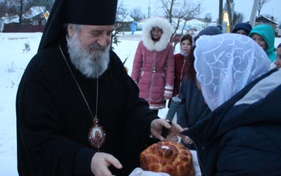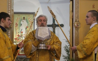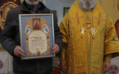 В завершении богослужения было совершено славления Господа нашего Иисуса Христа. Так же преосвященнийший владыка обратился с архипастырским словом к прихожанам храма, после чего наградил нескольких прихожан архиерейскими грамотами.
