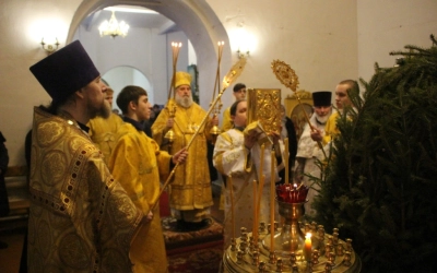 9 января 2022 года Преосвященнейший Сергий, епископ Вяземский и Гагаринский возглавил праздничную Литургию в Храме Рождества Христова г. Вязьмы