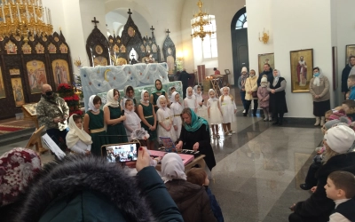 Также воспитанники , под руководством регентов Натальи Ишковой и Татьяны Нагиевой спели праздничные колядки.
