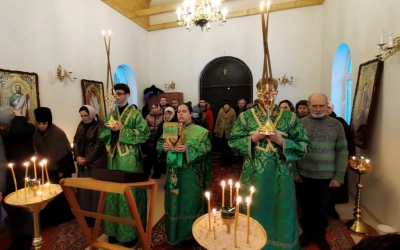 По завершении богослужения Епископ Сергий обратился к присутствующих с архипастырским словом и поздравил настоятеля, и всех присутствующих с праздником, пожелав всем крепости душевных и телесных сил, почаще в молитве обращаться к Прп. Серафиму Саровскому.
