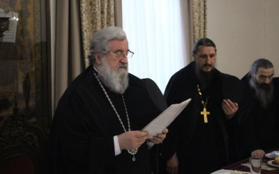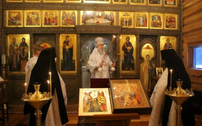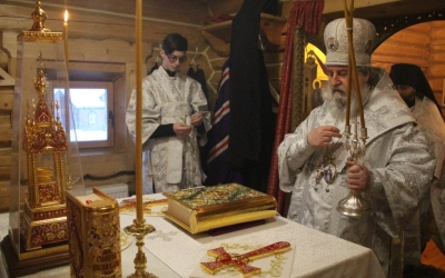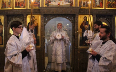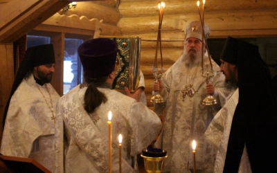 В завершении богослужения, владыка Сергий обратился с архипастырским словом к присутствующим. По окончании Литургии был совершен Чин о Панагии.