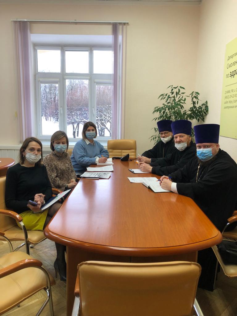 В мероприятии приняли участие представители органов исполнительной власти в сфере охраны здоровья в субъектах Российской Федерации и более 300 представителей 172 епархий на территории России. Представители Смоленской метрополии участвовали в онлайн-совещании из здания Департамента Смоленской области по здравоохранению.