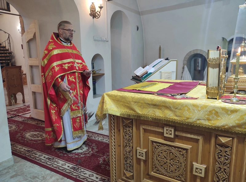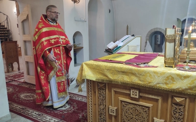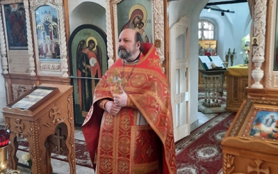 По завершении богослужения протоиерей Олег поздравил молящихся с празником святого Иоанна, часть жизни которого была тесно связана с Преображенским храмом.