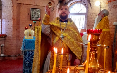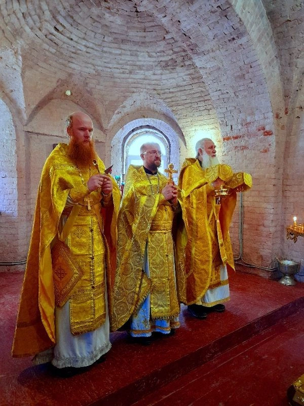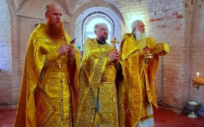В камерной обстановке восстонавливающегося храма молитвенно тихо и спокойно прошло богослужение в честь Трех Святителей, в завершении которого протоиерей Анатолий обратился с приветственным словом. Отец благочинный рассказал о житии и трудах святителей, поздравил присутствующих с престольным торжеством, высказал надежду помолиться под сводами восстоновленого храма.