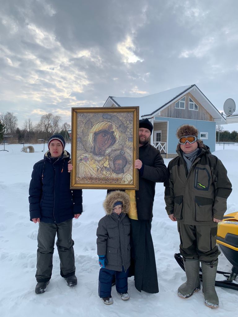 По окончанию молебна настоятель храма иерей Алексий со своими помощниками совершили Крестный ход с образом Иверской иконы Божией Матери, прибывшей с Афонской горы.