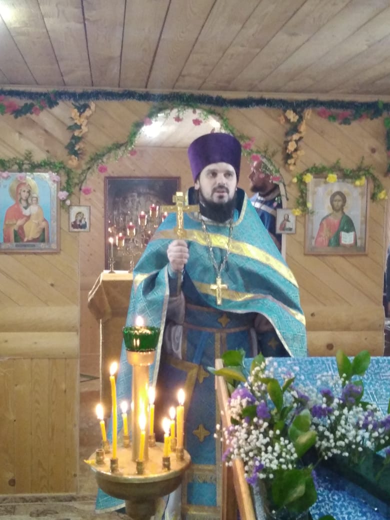 Божественную литургию возглавил благочинный Угранского округа иерей Александр Курмелев. Ему сослужил настоятель храма иерей Константин Титов. По окончании богослужения о. Александр обратился к настоятелю и прихожанам с поздравлением. Завершился праздник общей трапезой.