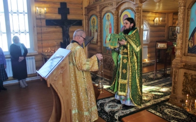 Богослужебные песнопения исполнили участники хора Свято-Троицкого кафедрального собора, Андрей Кичула и Александр Сафонов, под управлением регента Татьяны Курмелёвой.