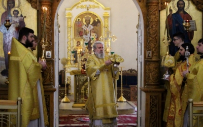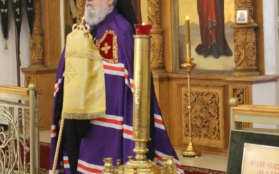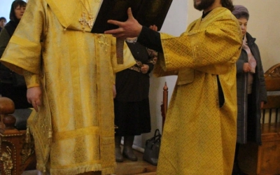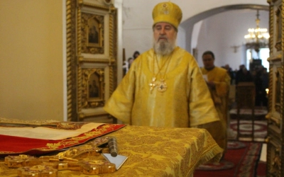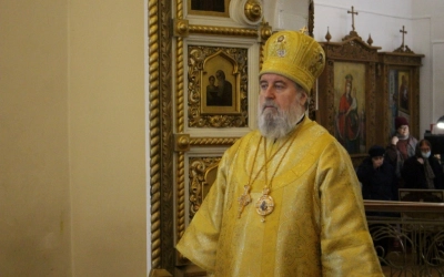 В завершении богослужения, преосвященнейший владыка обратился к присутсвующим с архипастырским словом на евангельскю тему и по окончании призвал на всех Божие благословение.